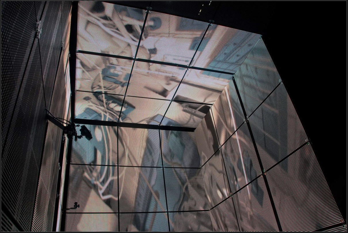 在燈箱裡,擁有巨大陣列的LED燈 – 基本上就像一個面朝內的大型電視牆。它以一般搖滾演唱會在樂團後方或在運動場上,用來放置大型影像的技術為基礎。Webber解釋說“每一個像素(Pixel)就是一顆我們可以控制的LED燈,事實上共有我們可以個別單獨控制的一百八十萬顆燈,因此不需真的移動實體燈光,我們只是調整每一個燈光的明亮、或讓不同的燈光有不同的顏色就可以了。這就是我們如何隨處移動不同的燈光,並不是真的去移動實體、基本上只是移動螢幕中的影像而已。”