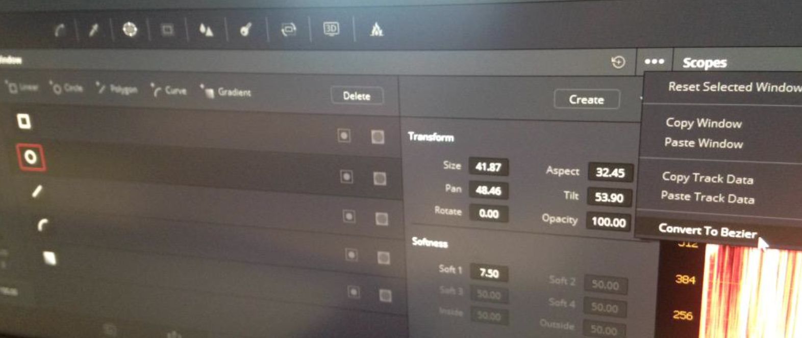 從Resolve 9開始,我就一直很期待這個功能,它很簡單、但將不再讓我頭痛。我使用很多圓形的Power Window,在選擇使用其他的形狀之前,我會先使用圓形。出於習慣,就算是天空我還是用圓形、而不用天空漸層(Sky Gradient)。大多數的情況下,我都可以得到我想要的效果,但偶而怎麼樣都不行。現在,我可以將圓形轉換成貝茲Window,它就變成了自訂形狀(Custom Shape),你可根據需要,增加控制點並進行調整,產生完美的造型,真的方便極了。