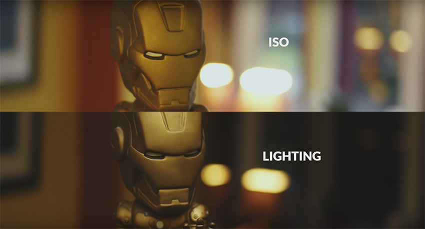 就像我們所知道的,ISO以數位的方式將你的影像調得比較亮一些,但此處理步驟,通常被視為最後一根稻草,因為ISO值越高、影像的顆粒(Grain)越多。然而,用高ISO進行拍攝,同時也意味著你的攝影機對於場景中的任何光源、即使是最小的光源,都會變得異常敏感。與其調高ISO值,你不如將它調低一點、調成任何可接受的水平,然後用一組額外的燈光,補足影像中曝光不足的部分。