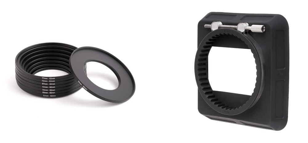 對於如: E-Mount 或 MFT 等攝影機的較小鏡頭, Zip Box 另有 49 、 42 、 55 、 58 、 62 、 67 、 72 、及 77mm 轉接環 ( Adapter Ring ),讓鏡頭前螺紋環較小的鏡頭,也能使用 Zip Box 4x4 80-85mm 及 4x5.65 80-85mm 。