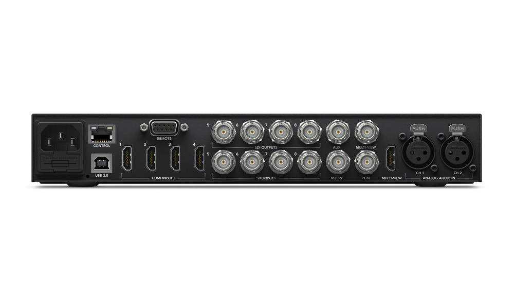 擁有微型化設計的現場製作切換器,帶8路輸入、內建控制台、2個態畫面存儲、DVE、混音台、攝影機控制單元、多畫面分割、USK去背和DSK去背等多項精彩功能
